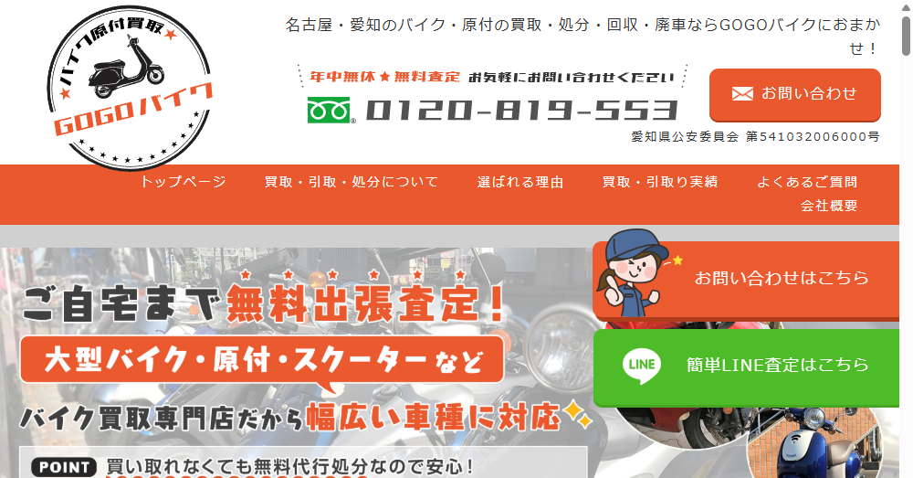 バイク原付買取★GOGOバイクは名古屋を拠点に、バイクや原付の買取、処分、回収、廃車を専門とする企業です。