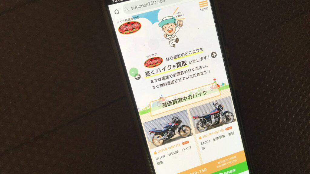 - バイク買取専門店SUCCESSは、24時間年中無休で無料査定を行い、迅速な出張買取サービスを提供しています。