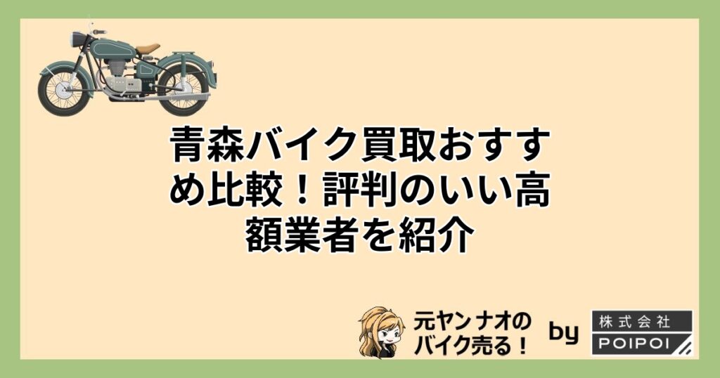 大切なバイクだからこそ高値で買い取ってもらいたいし、バイク好きな人にまた乗ってもらいたいですよね? 青森県でバイクを売るおすすめの方法はバイク専門の買取業者に査定を依頼するのがもっとも安心できて満足度の高くおすすめです。 バイク買取業者にはいくつかありますが、その中でもバイク王はバイク買取に関して総数の30%以上の買取りシェアを占めています。 家まで出張買取に来てくれるので不動車や車検切れで店舗まで持って行くことができないという方でも便利です。他社と比べれも圧倒的な買取実績があるため満足度も高いというのが特徴的ですよね。 一般的に大型にしか高額査定は不可能だとされる場合でもバイク王であれば、中型でも他社よりも高額買取を行ってくれる可能性は高いので少しでも高値で売却したいと考えている方にはとくにおすすめです! バイク王以外にも青森県にはおすすめのバイク買取専門業者があるので下記のランキングでそれぞれの特徴を知っておいてくださいね。