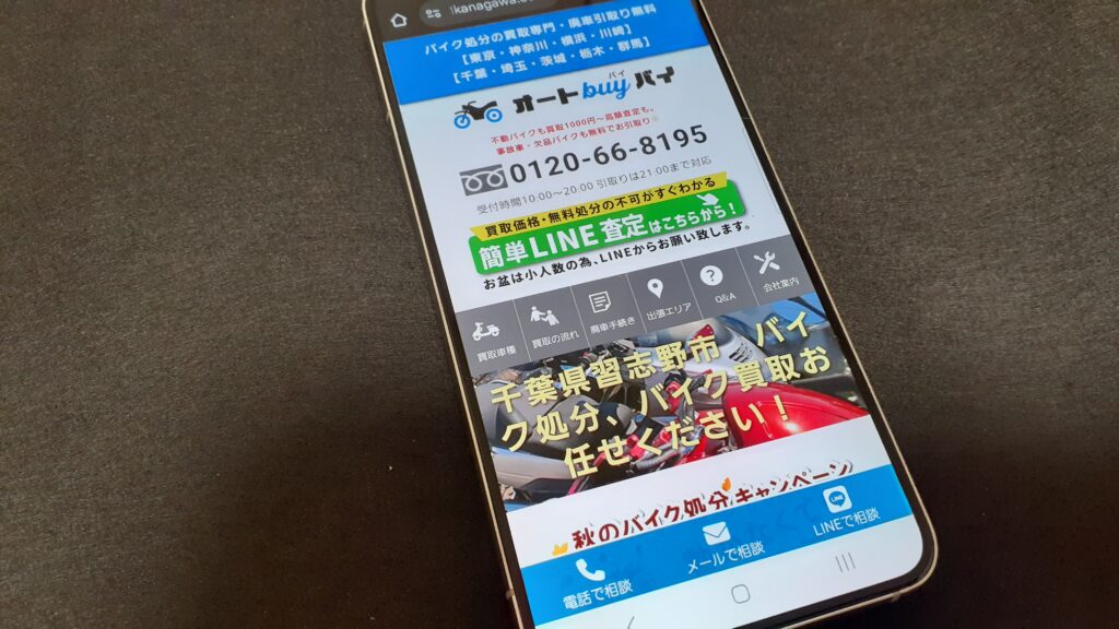 株式会社1plus1が運営するオートバイバイは、東京・神奈川・千葉・埼玉・茨城・栃木・群馬エリアでバイク処分と買取を専門とする企業です。