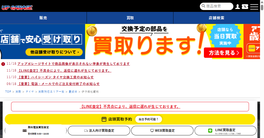 | 公式サイト | https://www.upgarage.com/sell/sell-parts/carpartslist/01-tire/kaitoriarea/shikoku/ehime/7 |