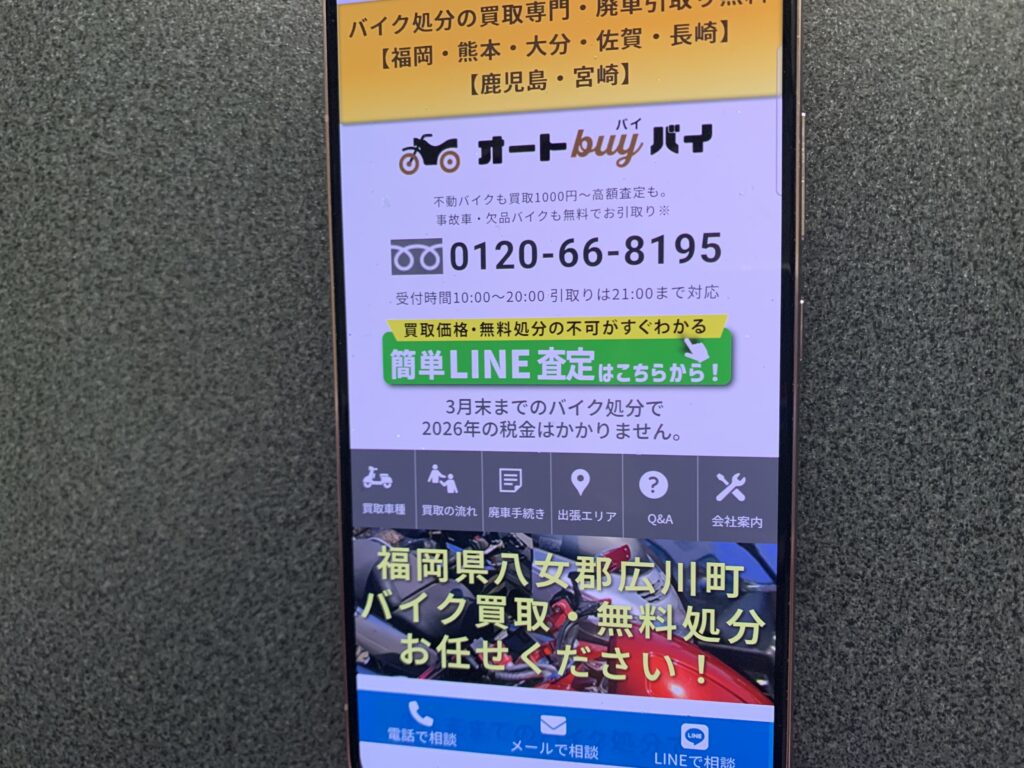 - 福岡・熊本・大分・佐賀・長崎エリアで、廃車手続きや回収を無料で行い、さらに不動バイクも1000円から買取可能です。