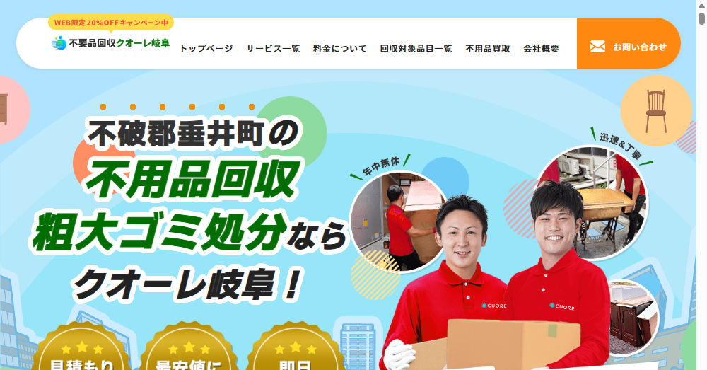 株式会社クオーレは岐阜県垂井町を拠点に、不用品回収や粗大ゴミ処分を専門とする業者です。