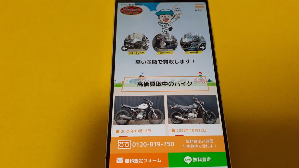• 24時間年中無休で無料査定を行っており、出張買取にも対応。忙しい方でもスムーズにバイクを売却できる環境を整えています。