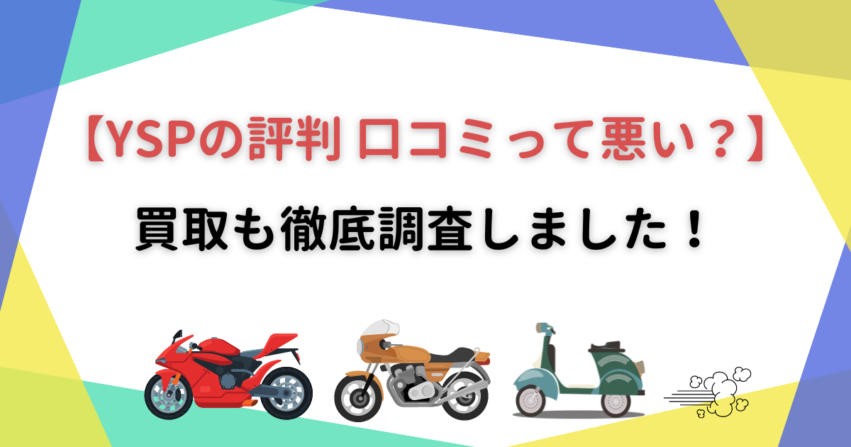 持っているバイクを買い取ってもらう時に、地元のバイクショップを考えると最初に思い浮かべることも多いYSPですが、調べてみると買取に関してだけは要検討!