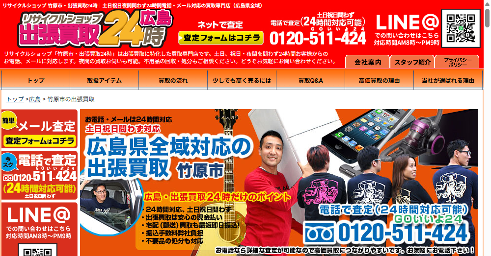 | 公式サイト | https://819-kaitori-hiroshima.com/areatype/%E7%AB%B9%E5%8E%9F%E5%B8%82/ |