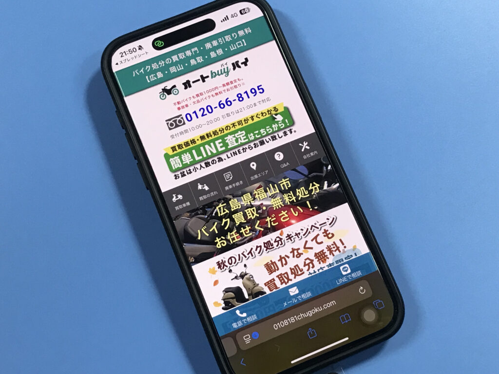 オートバイバイは広島県福山市を拠点に、バイク処分と買取を専門とする企業で、創業20年の実績を誇ります。