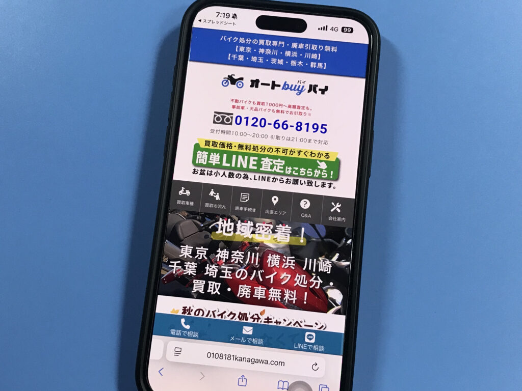 株式会社1plus1が運営する「オートバイバイ」は、東京・神奈川・横浜・川崎・千葉・埼玉・茨城・栃木・群馬を中心にバイク処分と買取を専門とする企業です。