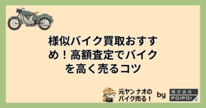 こう考えるとバイク買取業者にまとめて依頼してしまうのがもっとも手軽で確実なバイク売却方法だと言えますね。