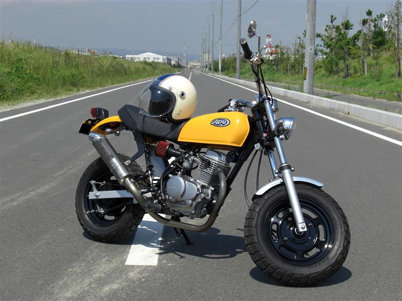クラシック志向の方であれば、そのイジりやすさを活かしたカフェスタイルも大いにアリで、セパハン+ビキニカウルでかなりそれらしい風格が出てくるのはエイプが持つシンプルさの妙味です。