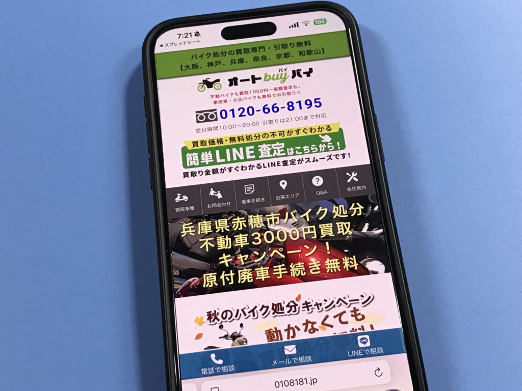 株式会社1plus1が運営するオートバイバイは、兵庫県赤穂市を拠点にバイク処分と買取を専門とする企業です。
