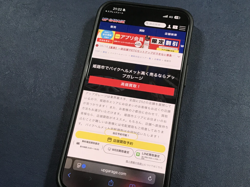 | 公式サイト | https://www.upgarage.com/sell/sell-parts/bikepartslist/02-helmet/kaitoriarea/kinki/hyogo/1 |
