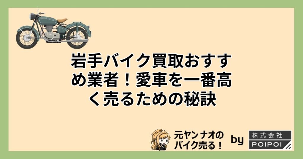 この記事の結論!- 岩手県でバイクを高く売るならバイク買取業者がおすすめ