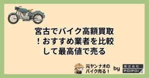 こう考えるとバイク買取業者にまとめて依頼してしまうのがもっとも手軽で確実なバイク売却方法だと言えますね。