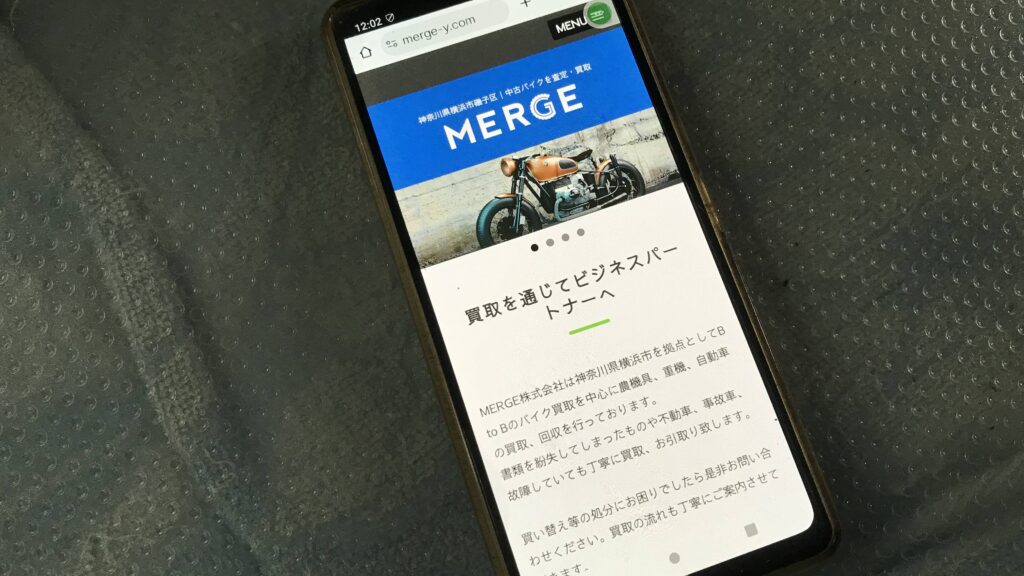 MERGE株式会社は神奈川県横浜市磯子区に拠点を置く中古バイク買取専門企業であり、BtoBビジネスモデルを採用しています。