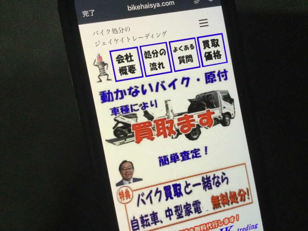 - 20年以上の経験を持つ元行政書士が運営するジェイケイトレーディングは、廃車手続きを無料で代行し、安心して不動バイクを買取ります。