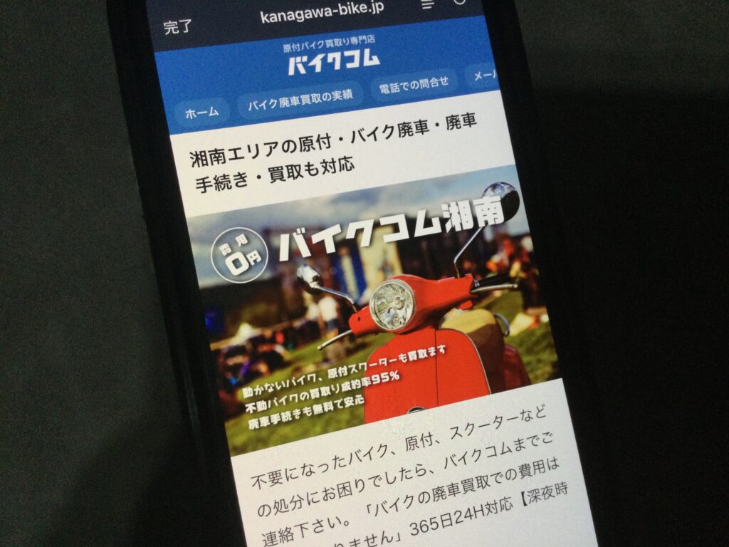 バイクコム湘南は、神奈川県湘南エリアを中心に原付やバイクの廃車、買取、引取り、処分を専門に行う企業です。