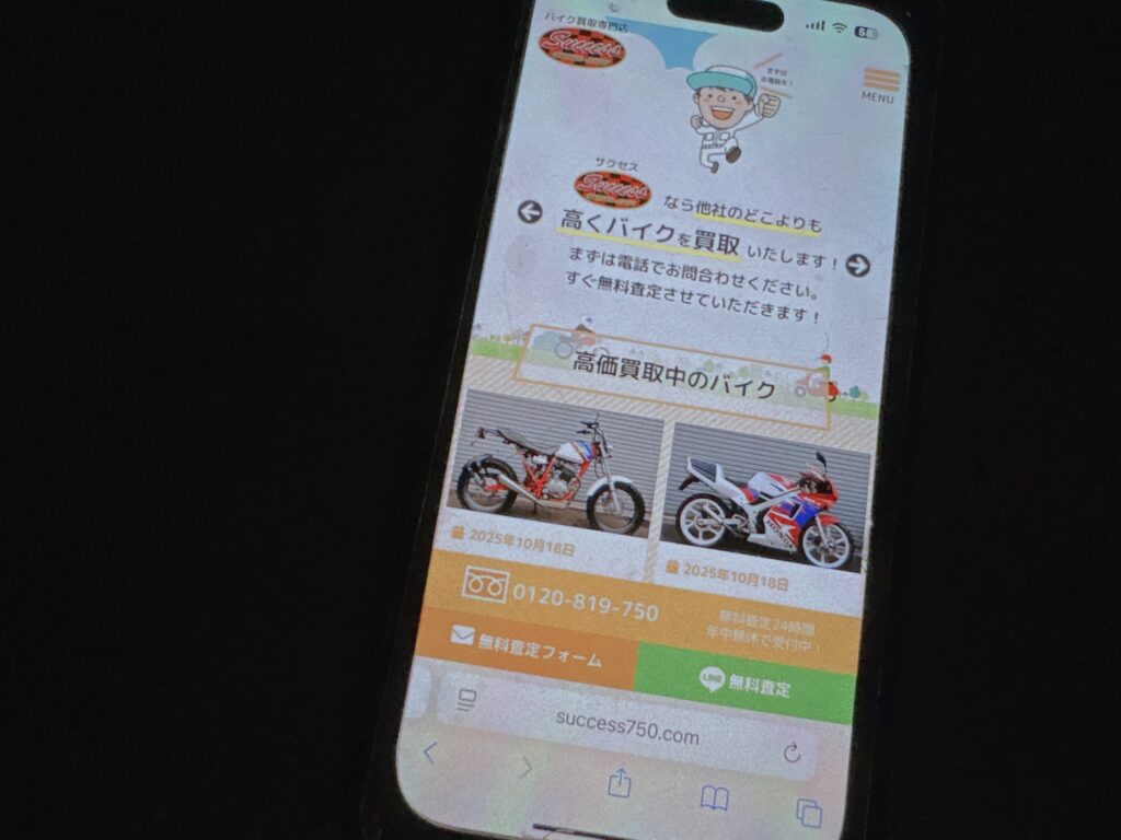 - バイク買取専門店SUCCESSは、24時間年中無休で無料査定を行い、迅速な対応を約束します。