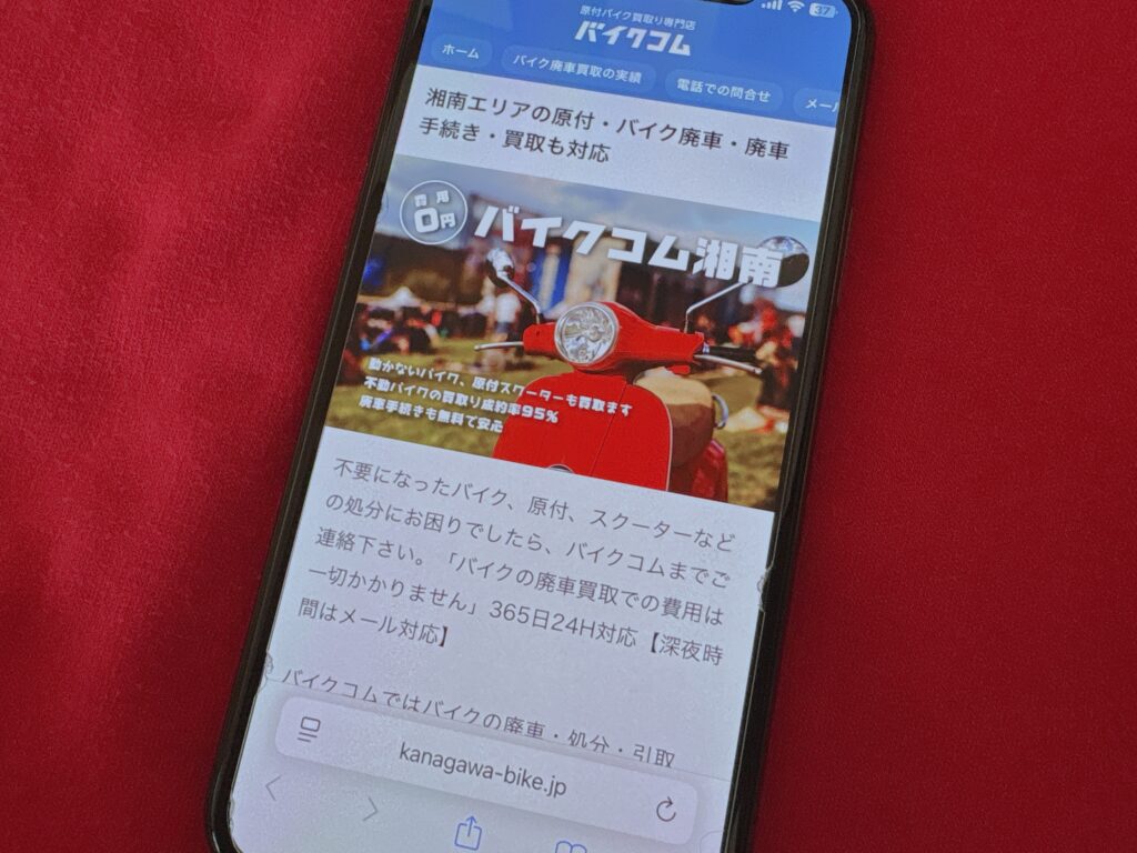 バイクコム湘南は神奈川県湘南エリアを中心に原付やバイクの廃車、買取、引取り、処分を専門に行う企業です。