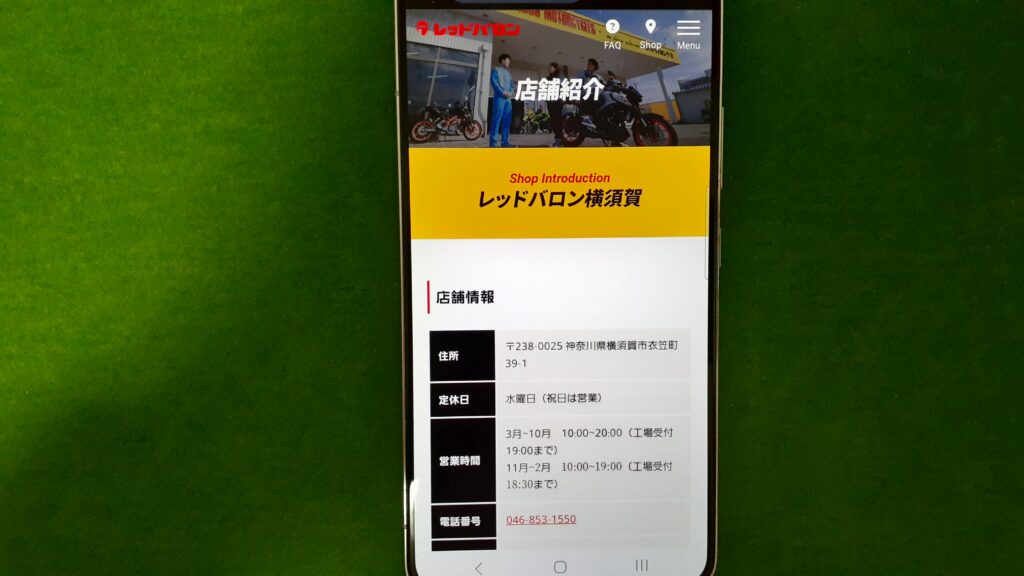 特に横須賀店は横浜横須賀道路衣笠ICからのアクセスが良好で、バイクの購入やメンテナンスに最適な環境を整えています。