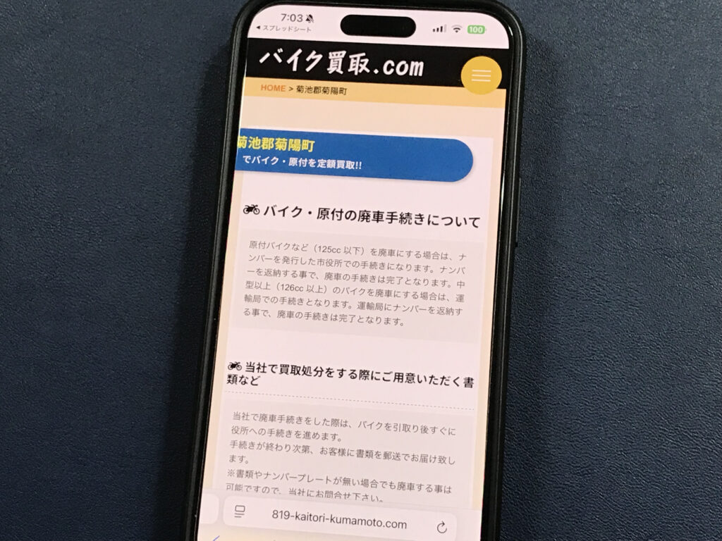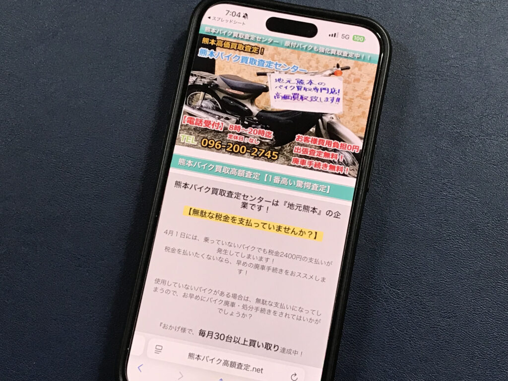 特に原付バイクの買取に力を入れ、無駄な税金を支払う前に早めの廃車手続きを推奨しています。