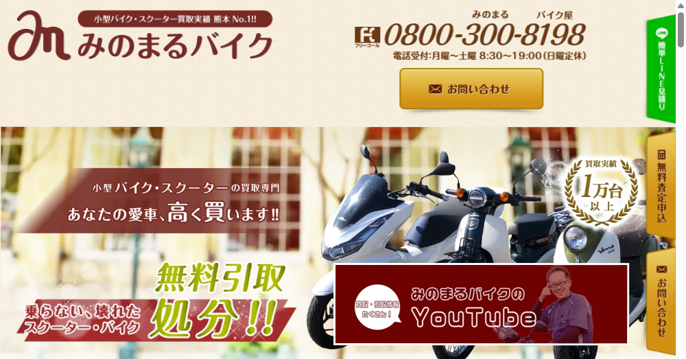 - 熊本密着の専門店として、1万台以上の買取実績を誇り、スクーターやミニバイクの高価買取を実現しています。