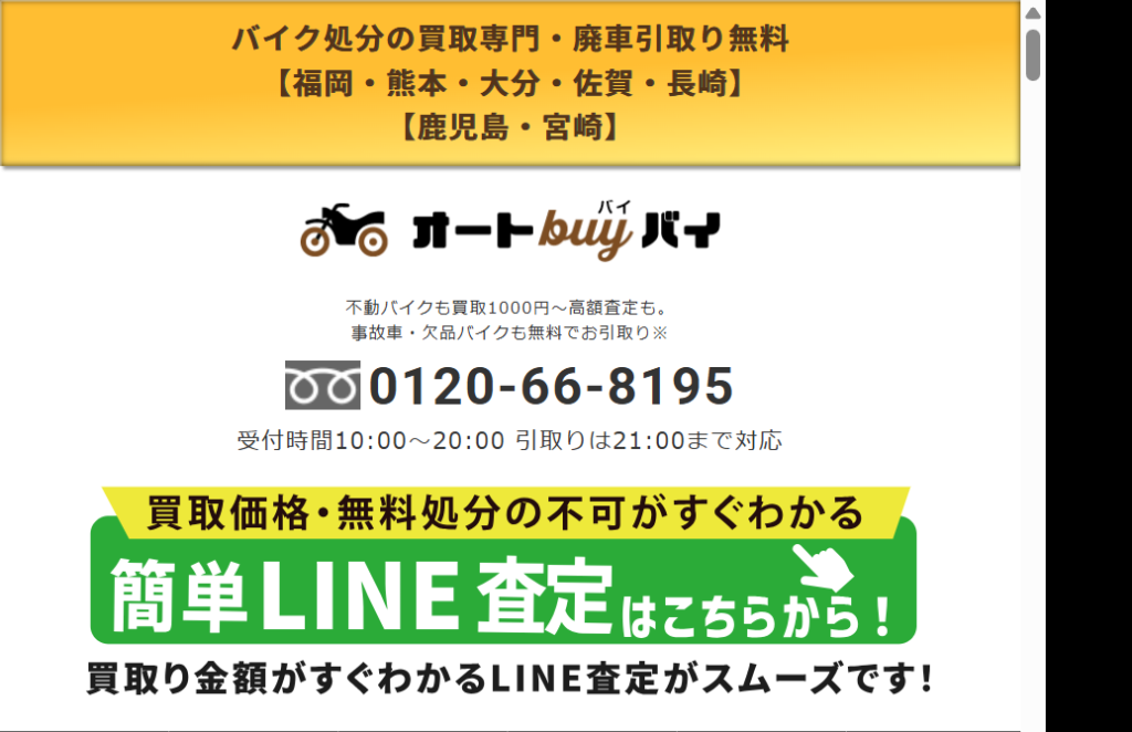 オートバイバイは九州エリアで、費用負担なくバイクを手放せる出張回収サービスです。