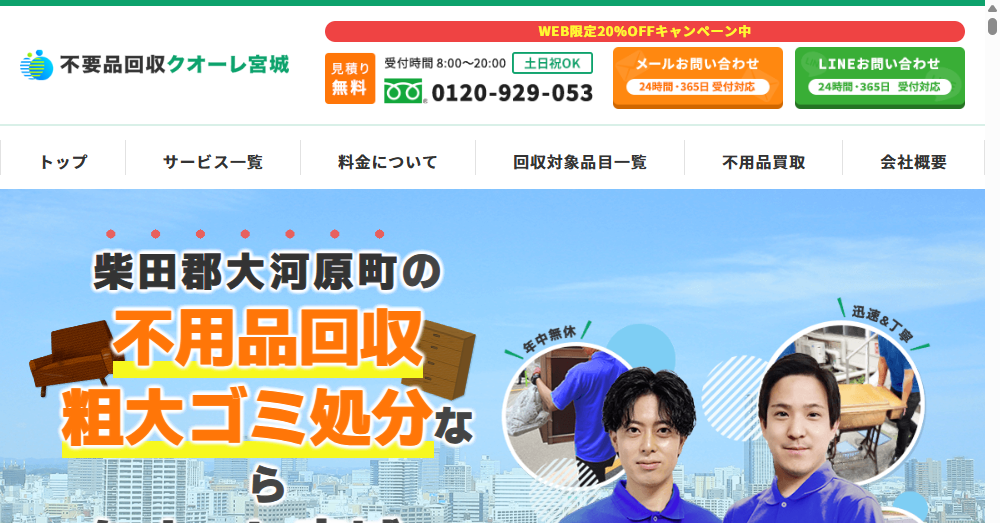 • WEB限定20%OFFキャンペーンを実施中で、買取可能な不用品はその場で査定し、回収費用を削減。お客様のニーズに応じた柔軟なサービスを提供しています。