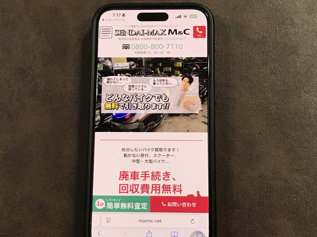 - 仙台マックスエムアンドシーは、事故車や不動車の買取を専門とし、他社では断られたバイクも親身に対応。廃車手続きや回収費用は無料です。