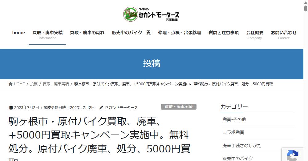 セカンドモータース石原輪業は、愛知県豊田市を拠点に原付バイクの買取、廃車、処分を専門とする企業です。