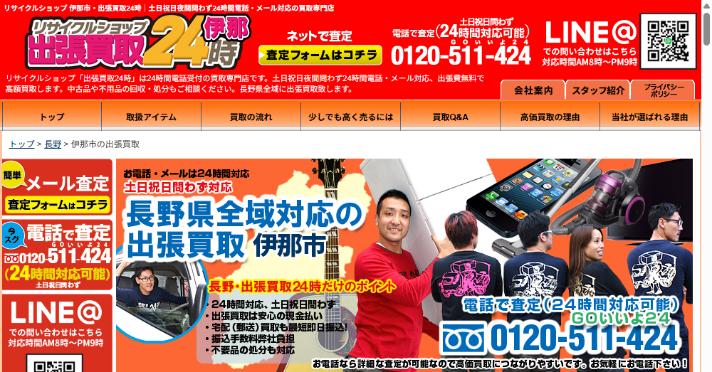 リサイクルショップ「出張買取24時」は、長野県全域に対応する24時間365日営業の買取専門店です。