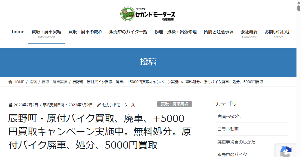 - 原付バイクの買取・廃車を専門とし、エンジン実動車は5000円買取キャンペーンを実施中。費用は一切かかりません。