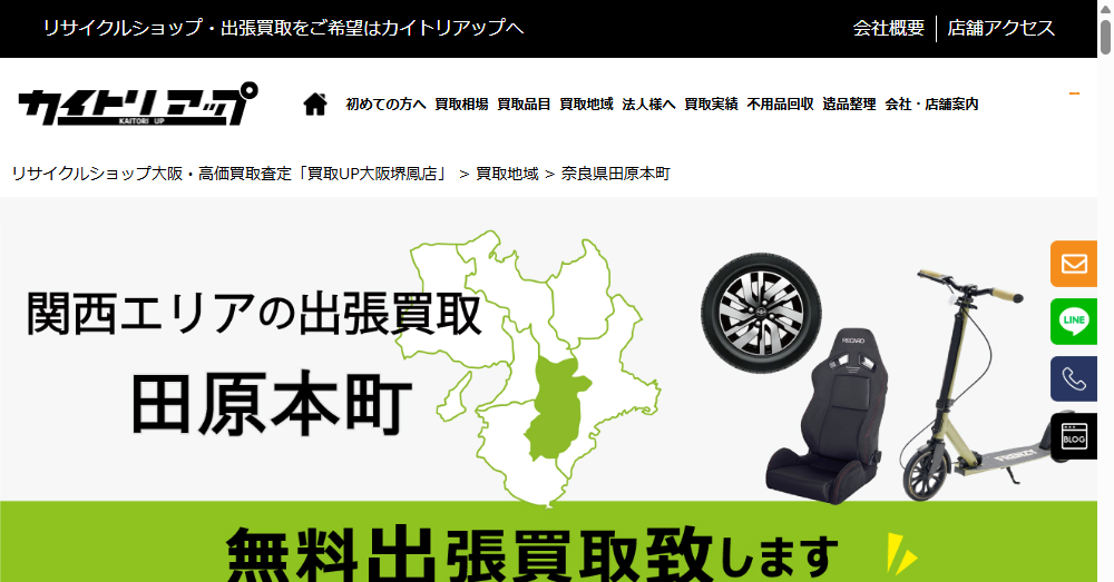 | 公式サイト | https://kaitoriup.com/kaitori-area/area-nara-tawaramotocho |
