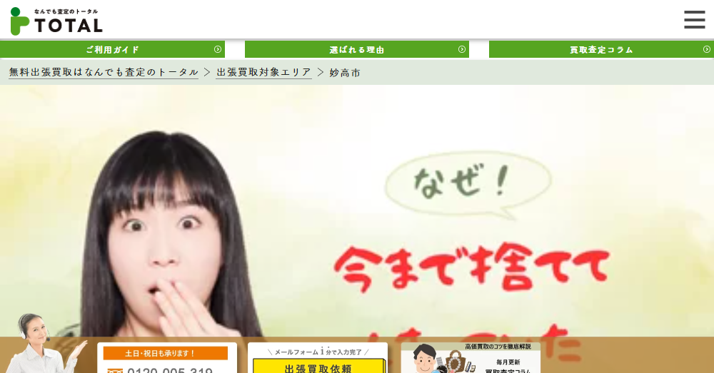 なんでも査定のトータルは、妙高市を拠点に全国展開する出張買取サービスを提供し、業界最高水準の査定力を誇ります。