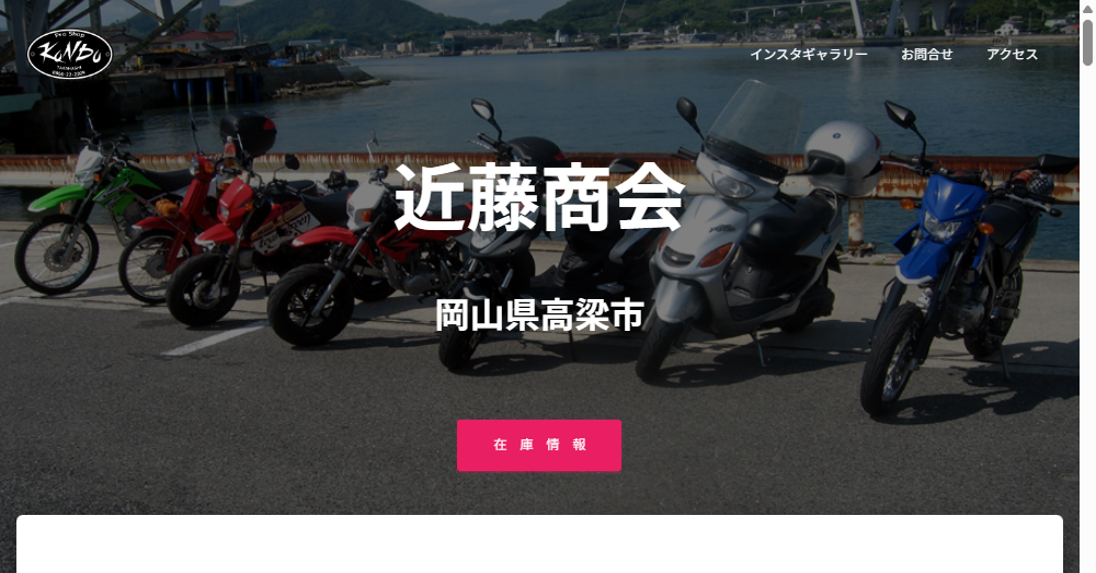 - 岡山県高梁市に位置する近藤商会は、原付からビッグバイクまで幅広いバイクの取り扱いを行い、専門スタッフによる高品質なサービスを提供しています。