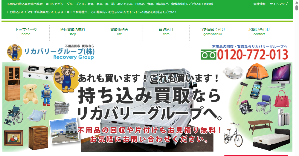 - 岡山リカバリーグループは、倉敷市中庄に位置し、家電や家具、衣類など多様な不用品を高価買取する専門業者です。