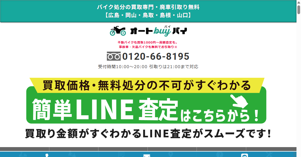- 岡山県高梁市で20年以上の実績を持つオートバイバイは、事故車や不動バイクも最低1,000円から買取り、高額査定にも対応しています。