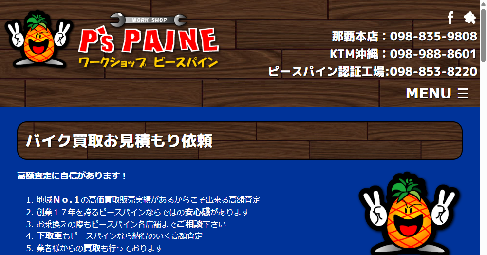 ワークショップピースパインは沖縄県に拠点を置くバイク買取専門店で、地域No.1の高価買取を実現しています。