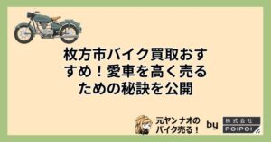 こう考えるとバイク買取業者にまとめて依頼してしまうのがもっとも手軽で確実なバイク売却方法だと言えますね。