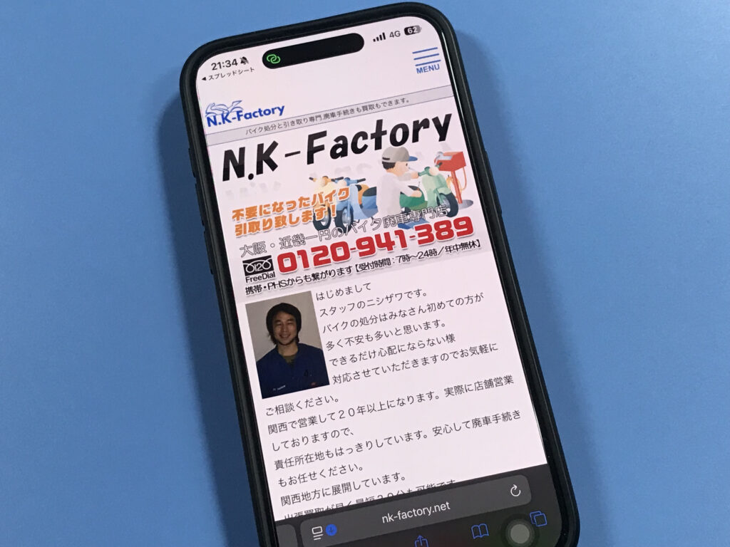 エヌケーファクトリーは大阪府東大阪市に本社を置くバイク処分と廃車手続きの専門業者であり、20年以上の実績を誇ります。