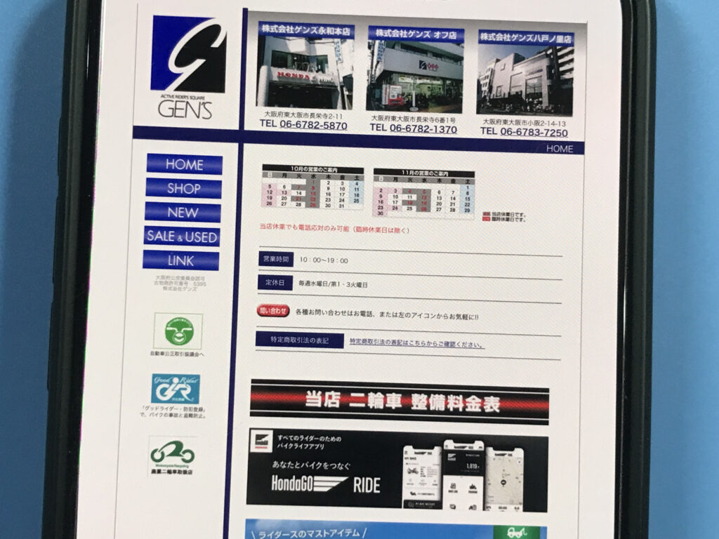 - 東大阪に3店舗を展開する株式会社ゲンズは、ホンダウィングプロス店としての専門性を活かし、オールラウンドなバイク展示販売を行っています。