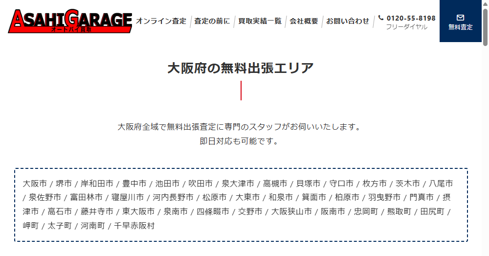 - 大阪府全域を対象とした無料出張査定