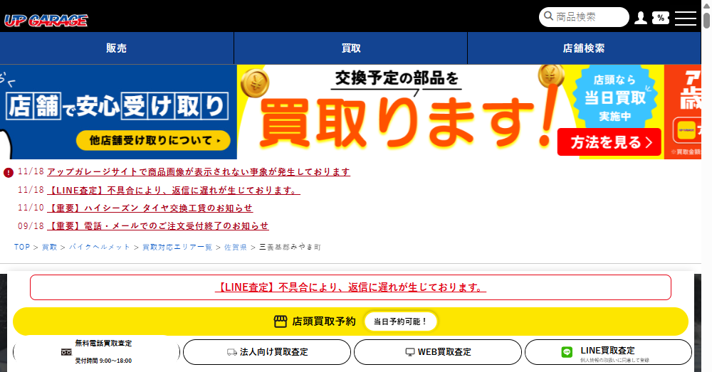 | 公式サイト | https://www.upgarage.com/sell/sell-parts/bikepartslist/02-helmet/kaitoriarea/kyushu/saga/5 |