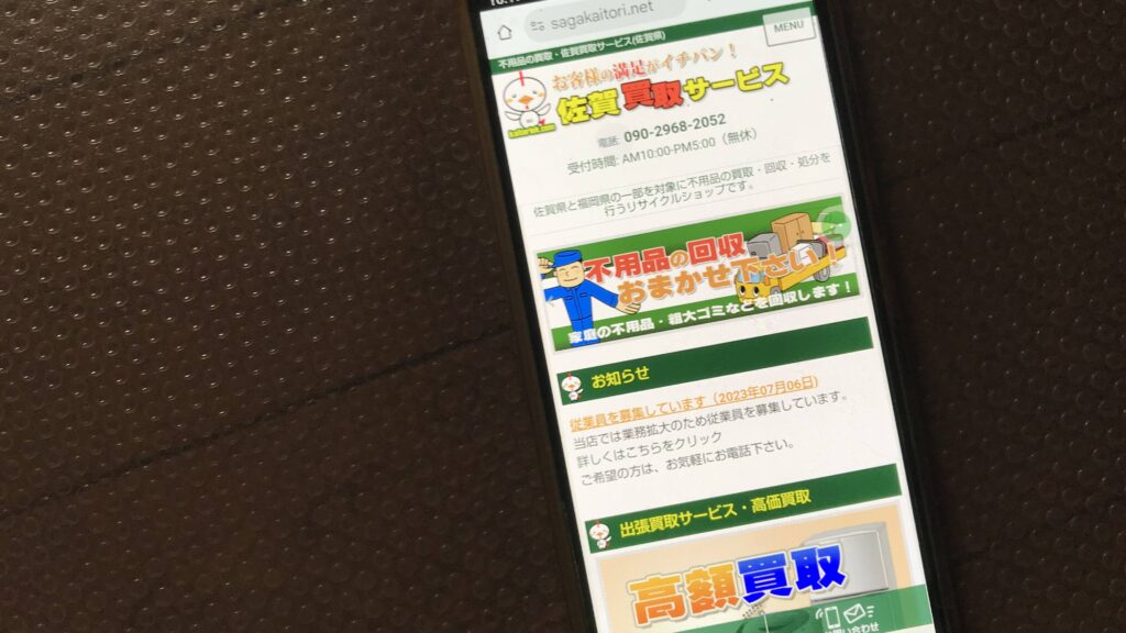 - 佐賀県と福岡県の一部を対象に、電化製品や家具などの不用品を高価買取・回収する専門店で、出張買取サービスも提供しています。