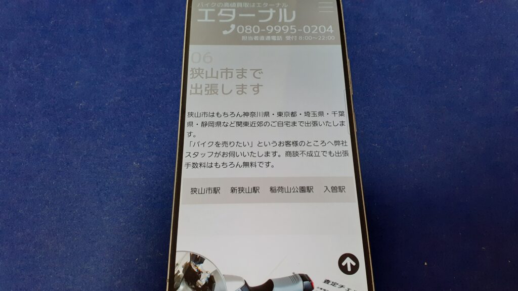| 出張買取 | 狭山市を含む関東近郊のエリアに対応 |