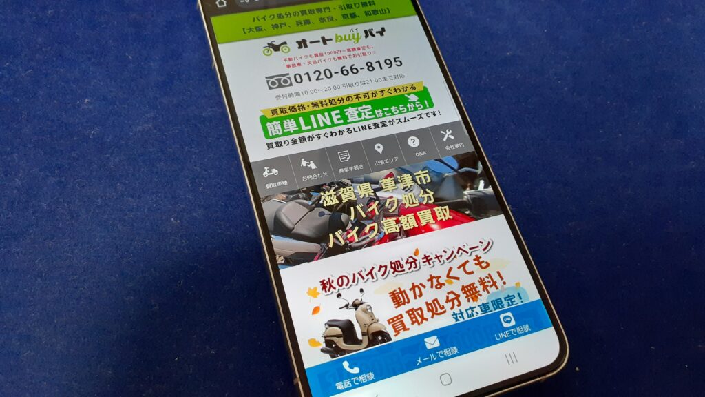 株式会社1plus1が運営するオートバイバイは滋賀県草津市を拠点に大阪、兵庫、奈良、京都、和歌山エリアでバイク処分と買取の専門店としてサービスを展開しています。
