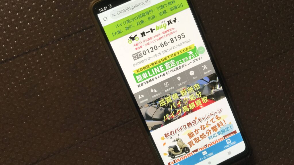 オートバイバイは地域密着型のサービスを提供しており、引取りは22時まで対応しています。