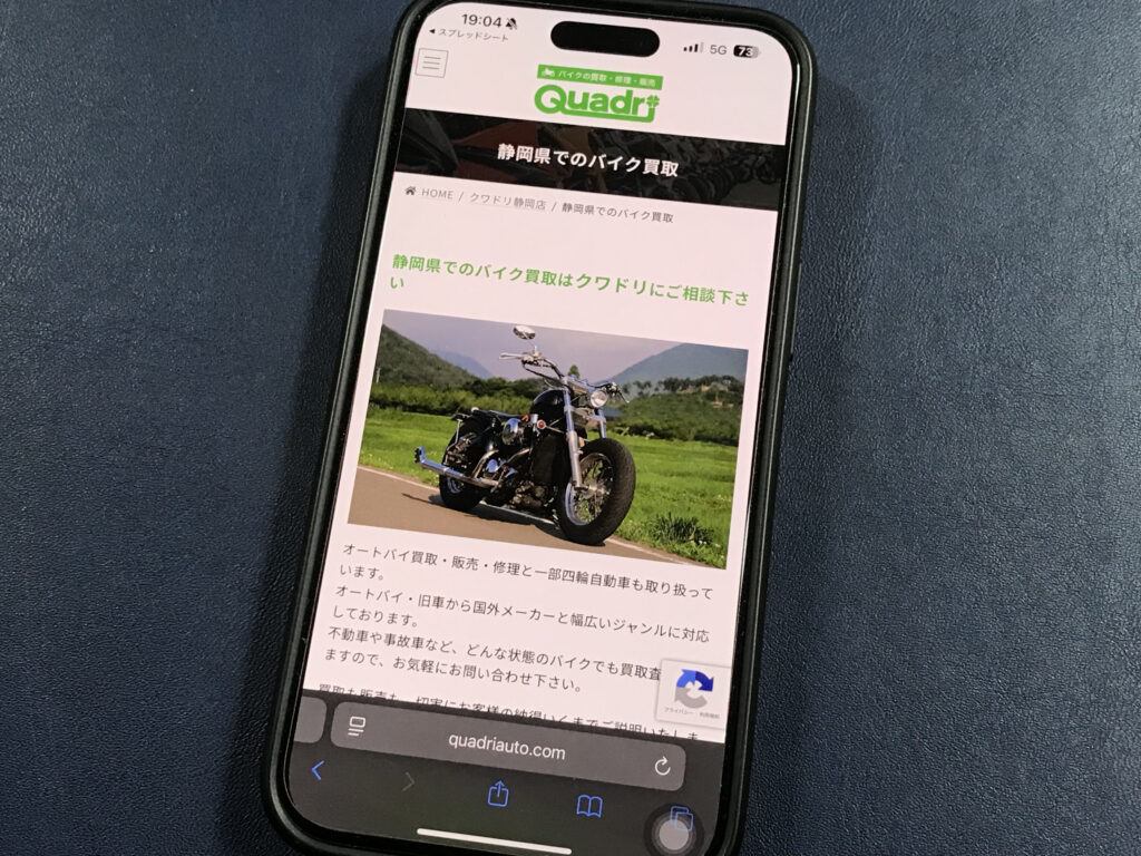 クワドリ静岡店は静岡県に位置するバイク買取の専門店で、オートバイの買取・販売・修理に加え、一部四輪自動車も取り扱っています。