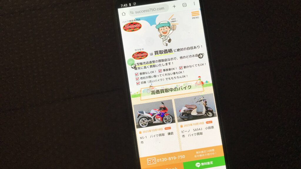 - 24時間年中無休で受付中のバイク買取専門店SUCCESSは、迅速な無料査定を提供し、顧客のニーズに応えます。