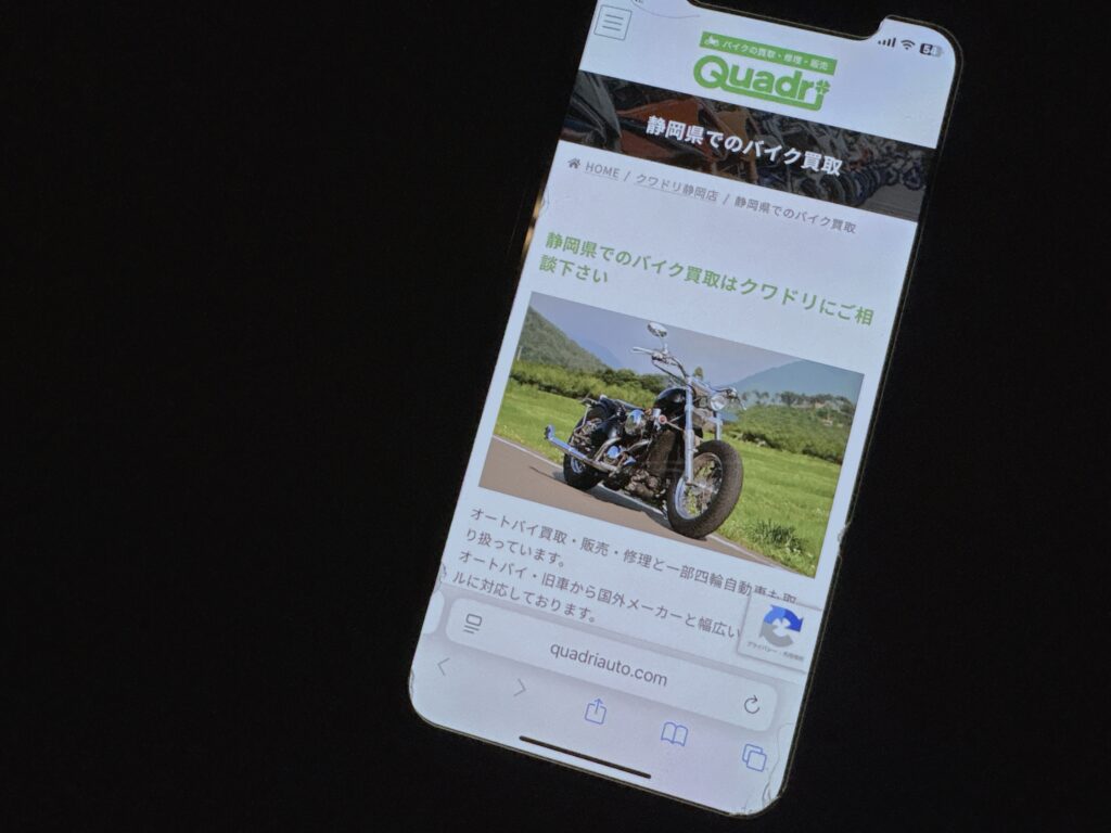 クワドリ静岡店は静岡県清水市に位置するバイク買取専門店で、事故車や不動車を含む幅広いバイクの買取を行っています。